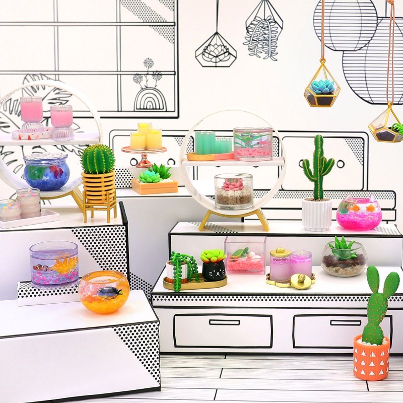 Почувствуйте себя дизайнером и создайте собственный авторский игрушечный мини-декор для дома из Miniverse серии ‘Mini Lifestyle’! Вы можете изготовить различные виды свечей, аквариум с рыбками или горшки с растениями! Создайте свой собственный мини-мир уюта!
