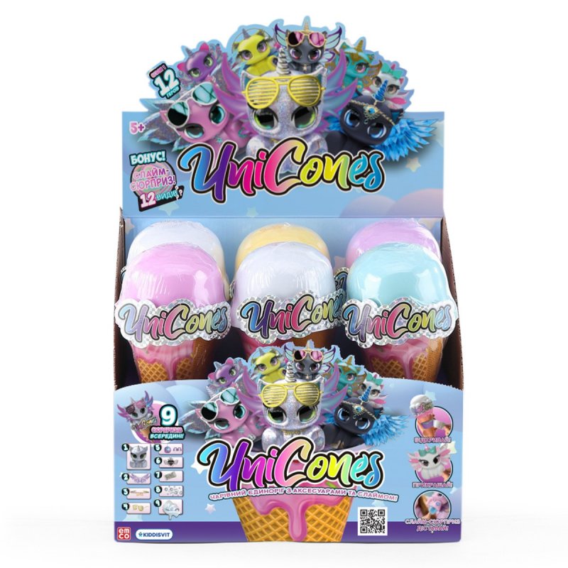 Игровой набор с фигуркой UNICONES – это коллекция милых единорогов в рожке-мороженом. В каждом рожке Вас ждет очаровательная фигурка единорога и еще несколько сюрпризов внутри – это слайм, различный декор и аксессуары, которыми можно украсить вашего любимца. В коллекции 12 персонажей. Соберите всю коллекцию единорогов UNICONES, чтобы играть, сочетать аксессуары и создавать лучшие образы для своего героя!
