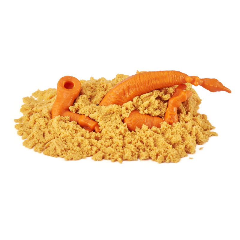 Игрушка в наборе SMASHERS Dino Island — это коллекционная серия для юных любителей исследований, фанов динозавров и пиратов. Чтобы начать игру, нужно разбить яйцо, внутри которого окажется три субстанции: кинетический песок, слайм и шариковый пластилин. Добываем части фигурки оранжевого Тираннозавра. В собранном виде у хищника шарнирные конечности и хвост.