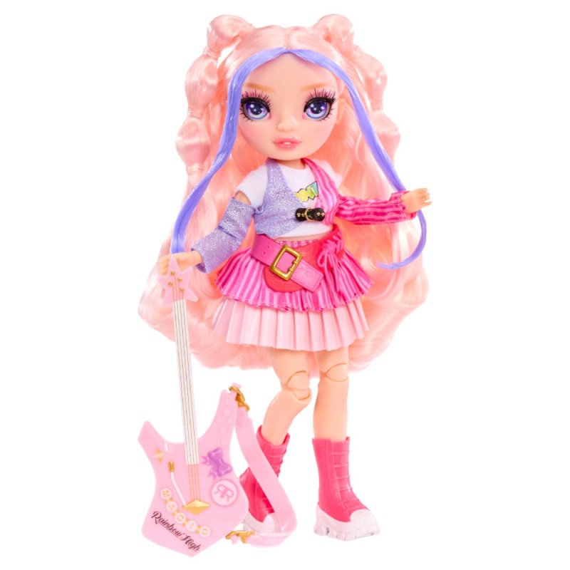 Кукла RAINBOW HIGH серии «Junior High Rockband» – БЕЛЛА – стильная красавица с волосами нежных розового и сиреневого цветов.