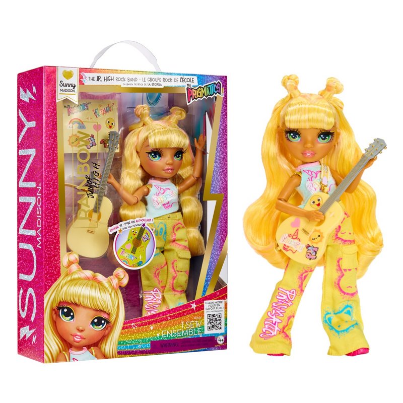 Встречайте новую серию RAINBOW HIGH «Junior High Rockband» – группа, которая диктует ритм не только в музыке, но и в моде! Четыре младшие версии любимых героинь собираются вместе, чтобы создать собственную группу: с гитарами, микрофонами и взрывным настроением. От репетиций до настоящих концертов – шоу продолжается, а ваше воображение задает ритм! Соберите их все и создайте свою модную и стильную радугу!