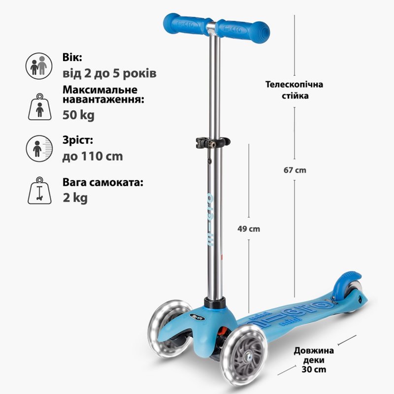 Детский самокат — это не только активная физическая нагрузка. С его помощью у ребенка улучшаются баланс, координация и моторика. И для этого самокат должен быть высокотехнологичным и безопасным. Поэтому самокаты Micro Mini Deluxe Glow LED имеют ряд особенностей: