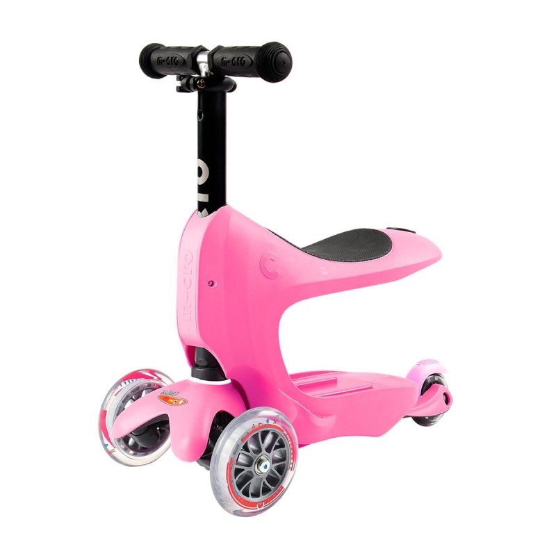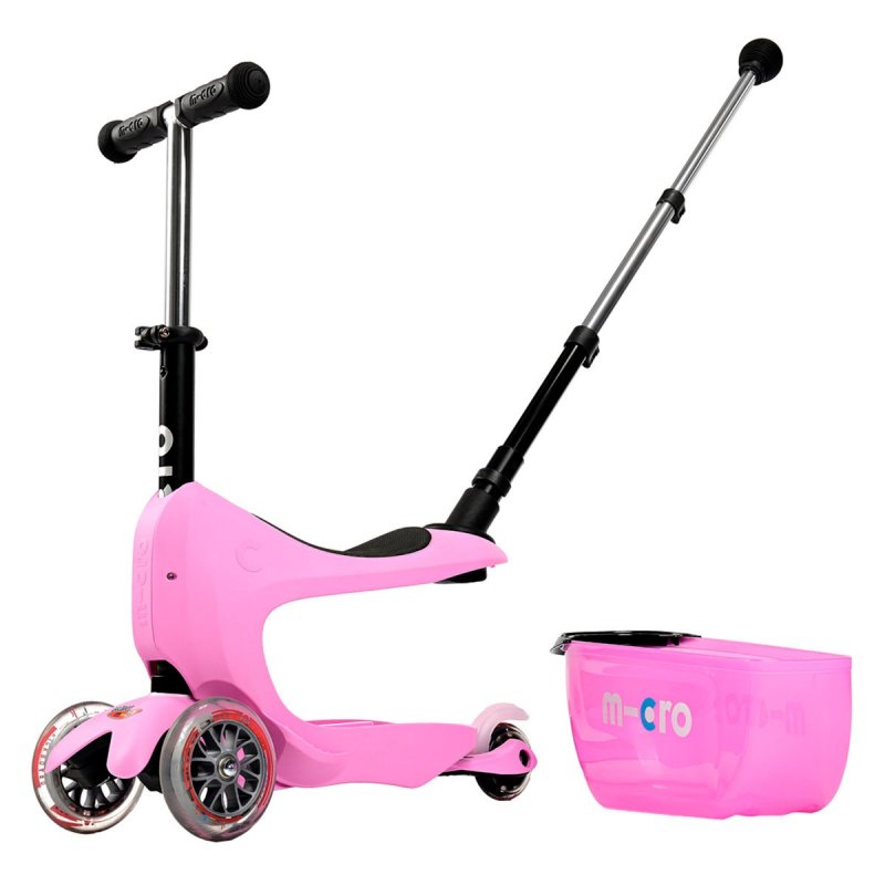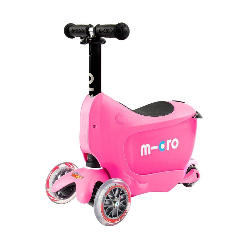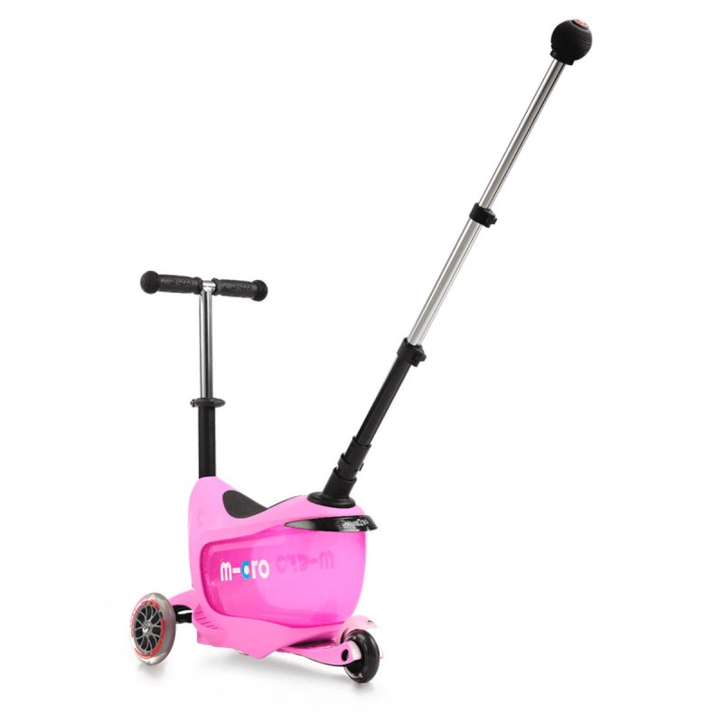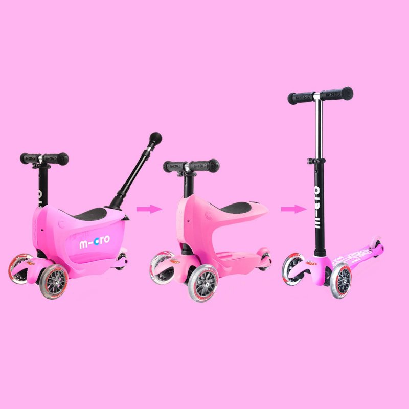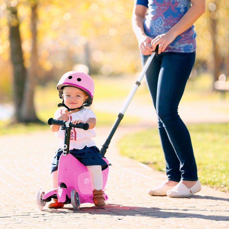 • По мере роста ребенка ручку-контроля можно снять и ребенок будет пробовать самостоятельно управлять беговелом. В дальнейшем сиденье также можно снять и продолжить использовать Micro Mini 2go Deluxe в качестве самоката.