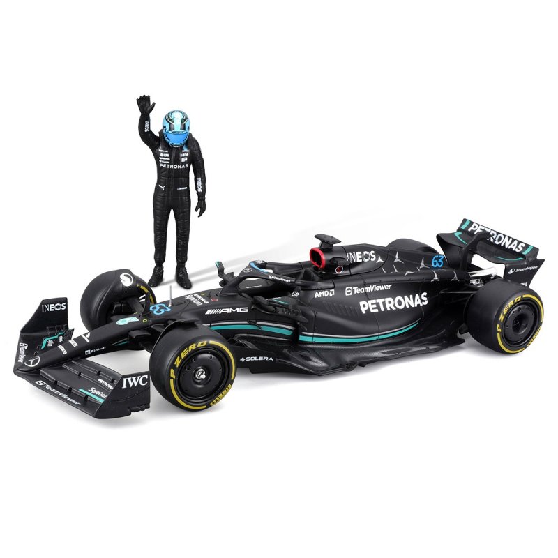 В асортименті представлено 2 варіанти автомоделей з фігурками: Льюїс Гамільтон під номером 44 і Джордж Расселл під номером 63.