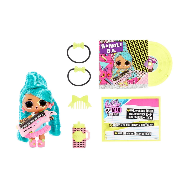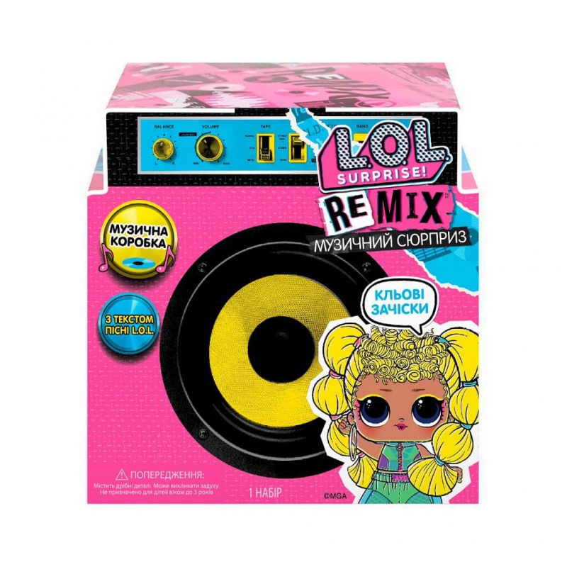Ви любите слухати музику і чекаєте на класну новинку від бренду L.O.L. Surprise!? Тоді зустрічайте серію Remix Hairflip” – МУЗИЧНИЙ СЮРПРИЗ – лялечки зі справжнім волоссям і яскравою зачіскою з сюрпризом! Кожна з них прихильниця свого жанру музики. Знайдіть їх усіх!