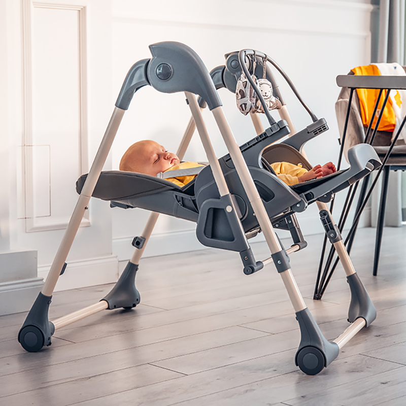 Має 3 швидкості гойдання та комфортний режим. Це функція автоматичного виявлення руху дитини. Після його активації гойдалка починає працювати протягом 15 хвилин. За час розгойдування відповідає таймер, який можна встановити на 15, 30 або 45 хвилин.